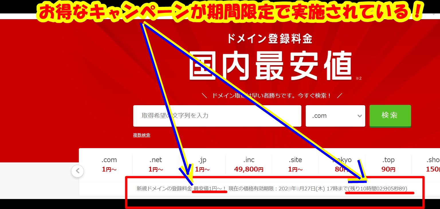 主契約ドメイン1枚分を無料でご提供!