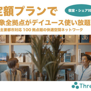◆【Threes(スリーズ)】からのメッセージ◆ Threesは15分単位で利用できるフレキシブルスペースのマーケットプレイスです。 コロナにより働き方が大きく変わりました。 場所問わずはたらくことができる世界を目指してホテルやワークボックスなど 快適な空間ネットワークを提供していきます。 シェアオフィス、コワーキングスペースのサブ拠点としてもThreesをご活用いただいています。 地上波、Webメディア実績多数、今後も拠点数が増えていく予定です。