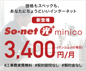 【minico】『契約期間なし』『解約金なし』のインターネット接続サービスです。
